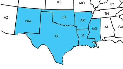 We cover the states of Texas, Oklahoma, New Mexico, Arkansas, Louisiana, and Mississippi